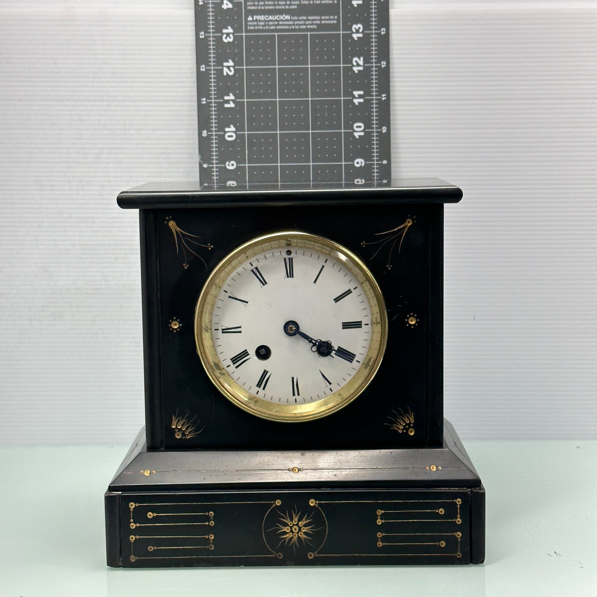Clock measures 9” tall x 5” deep